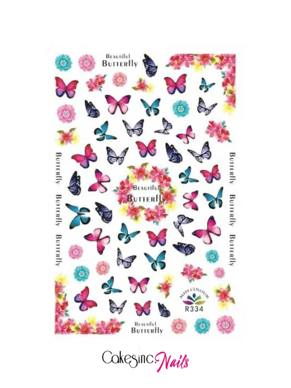 Glitter.Cakey - Butterfly 'STICKER SHEET R334'These stickers are thin so you can easily apply them to the nails. Because they are so thin you can easily stick them on top of your acrylic or gel nail and finish with any top coat of your choice.