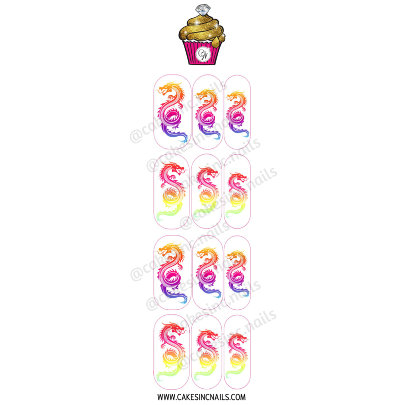 CakesInc.Nails - Summer Ombré Dragons 'NAIL DECALS'